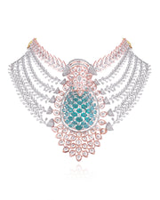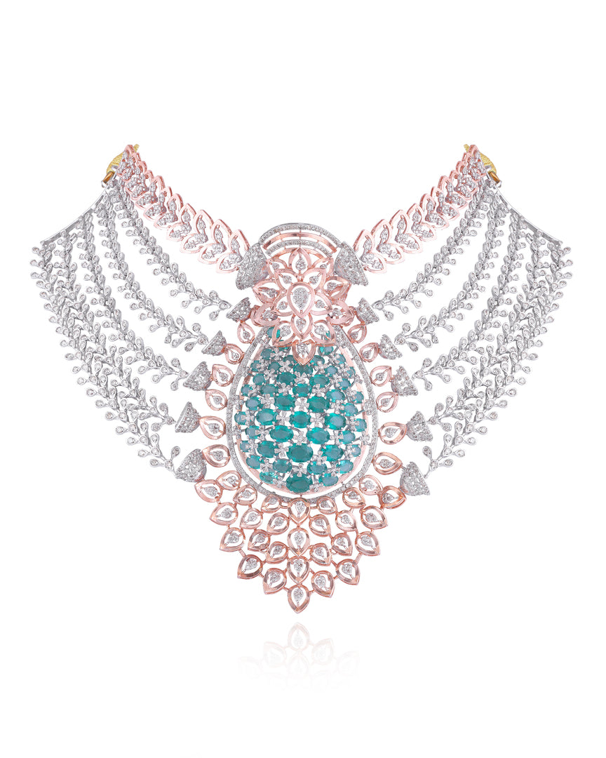 Highlighted by a stunning emerald centerpiece surrounded by layers of intricate diamond and rose gold accents, this necklace is a...